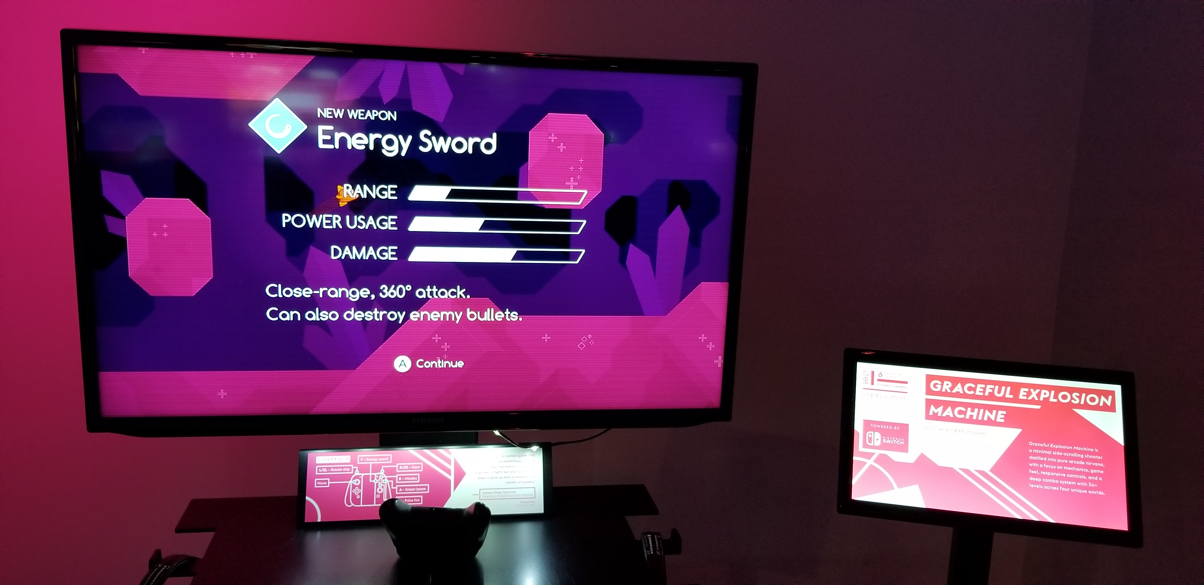 A colourful side-scrolling shoot-em-up which arms the player with four unique and devastatingly powerful weapons at once. It debuted on the Nintendo Switch in April 2017, making it one of the first titles on the console.