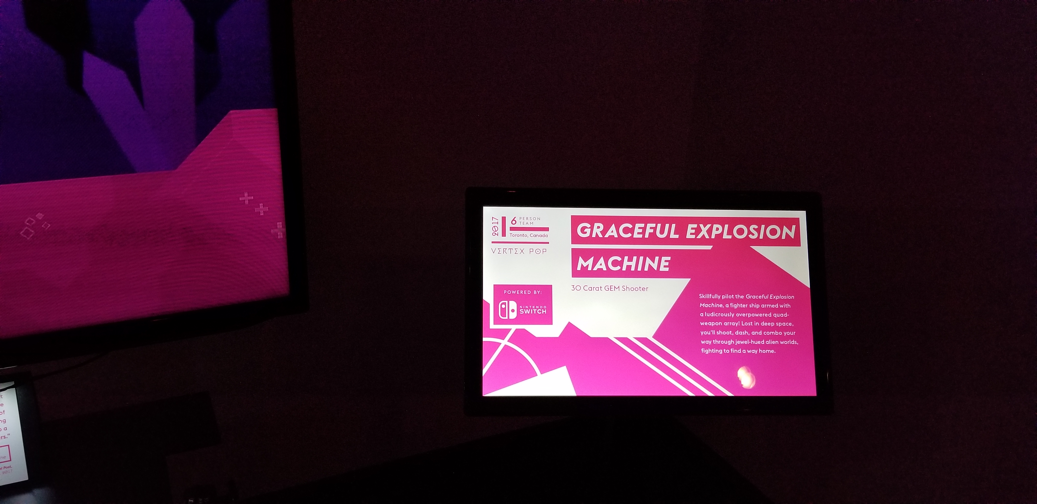 I am probably best known as the founder of Vertex Pop, a game development studio focused on feel-good action games. I made some well loved games, like Super Crush KO and Graceful Explosion Machine, alongside an incredible team.